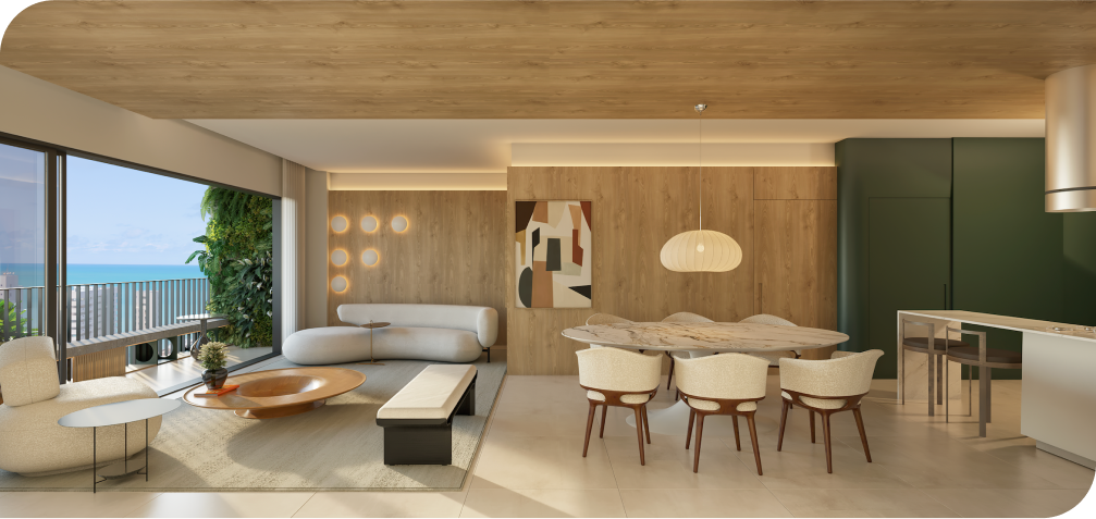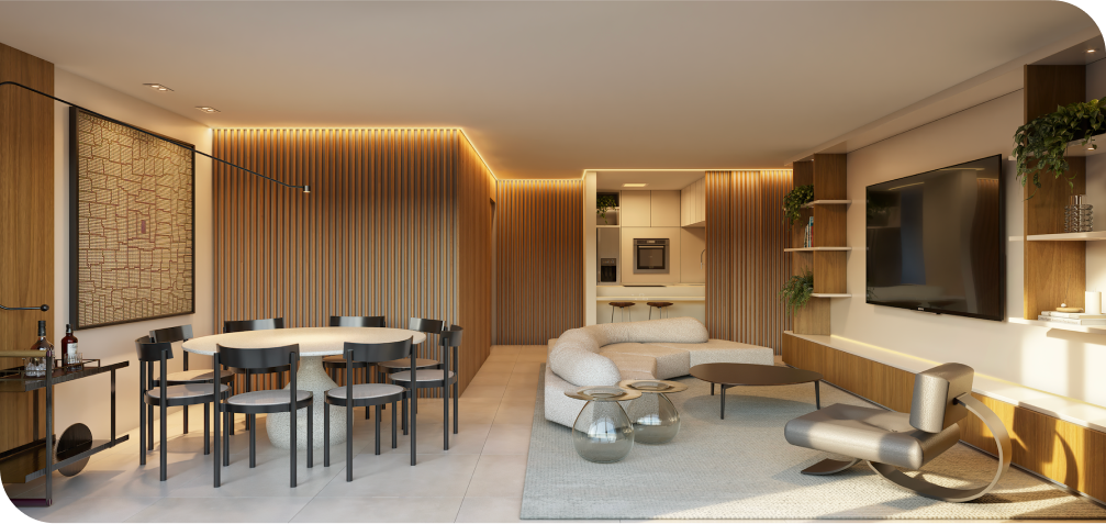 Desenhado pelo AO - Architects Office, com paisagismo concebido por Takeda Design, integra o verde com o urbano em todos os ambientes do projeto. Com duas torres residenciais e um mall de serviços, conforto e estilo se encontram em perfeita harmonia.